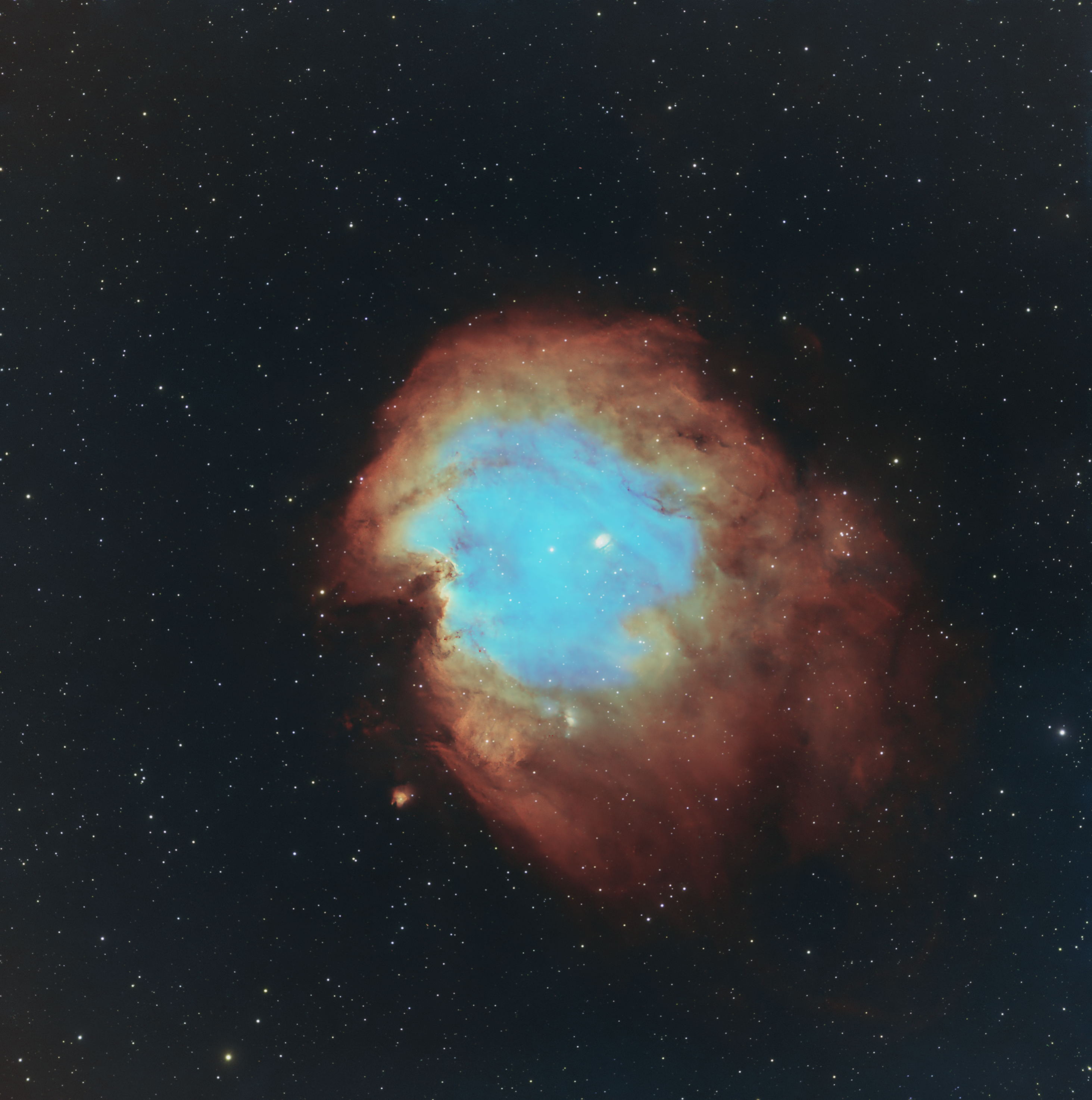 This image is comprised of 114 5 minute exposures using 7nm Hydrogen Alpha, Sulphur2 and Oxygen3 filters, again combined using the FORAX palette in PixInsight.